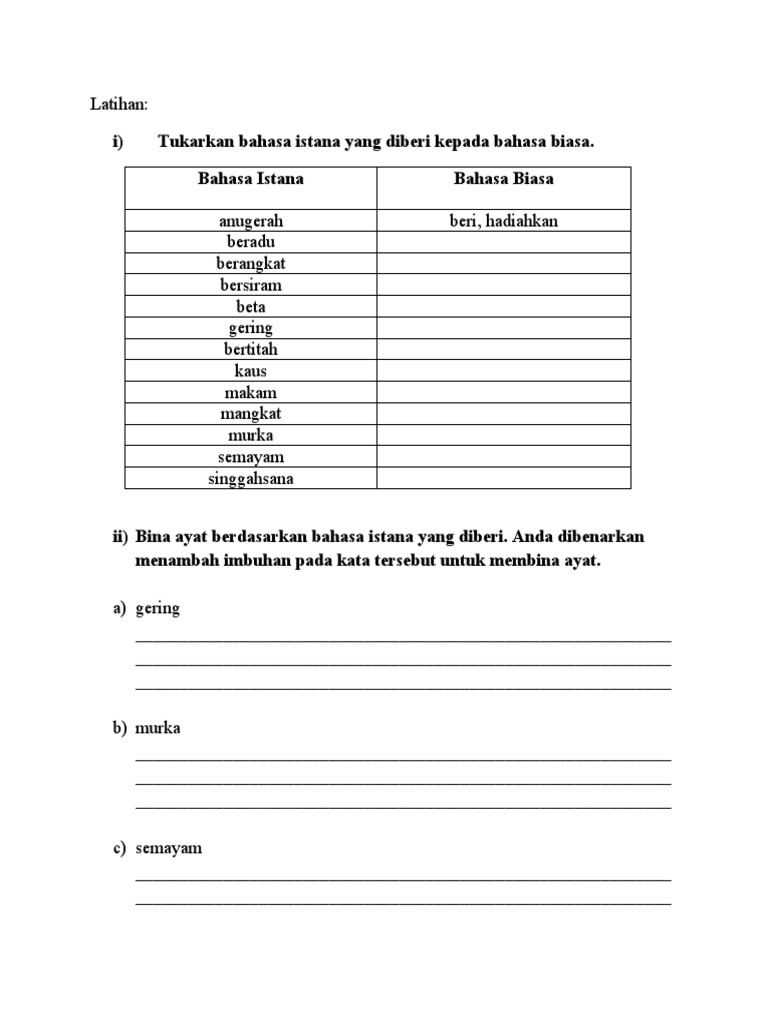 Contoh ayat bahasa istana bersiram contoh surat. Contoh soalan dialog bahasa istana upsr malacca e. Entdecke rezepte einrichtungsideen stilinterpretationen und andere ideen zum ausprobieren.